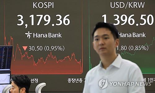 26일 코스피는 전장보다 30.50포인트(0.95%) 내린 3,179.36으로 거래를 마감했다.