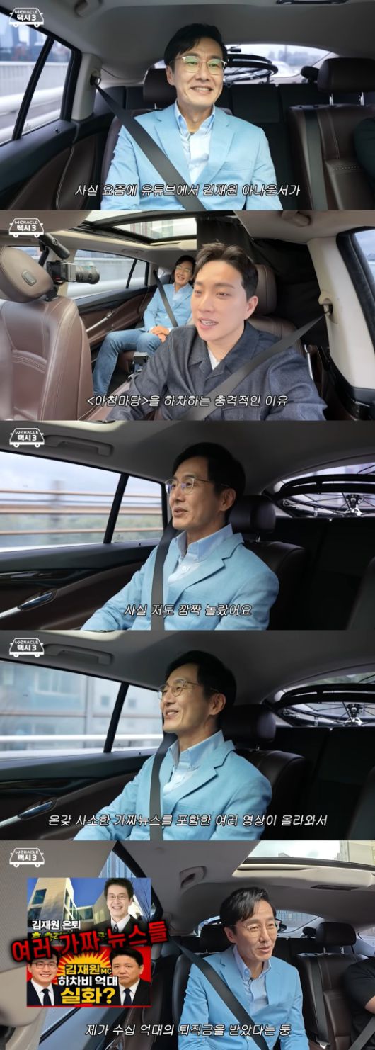 공개된 영상에서 김재원 아나운서는 "사실 제가 지난달에 KBS 퇴사하고 '아침마당' 떠나고 나서 하는 첫 일정"이라며 "그래서 알게 모르게 좀 가슴이 콩닥콩닥했는데 이 택시를 타는 순간 이렇게 편안해질 수가 없다. 이게 사소한 기적이냐"고 이야기했다.