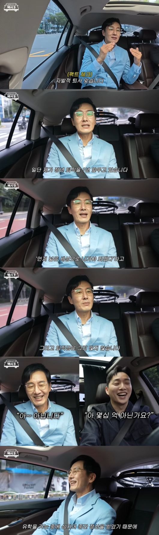 그는 "자발적 퇴사가 맞다. 일단 제가 정년퇴직을 1년 앞두고 있다. '먼저 넓은 세상으로 나가야 되겠다' 결심한 것"이라면서 "그리고 퇴직금은 그리 많지 않다. 제가 과거에 유학을 가는 중에 심지어 중간 정산을 받았기 때문에 아주 소소한 금액임을 다시 한 번 알려드린다"고 여러 가짜뉴스에 대해 해명했다.
