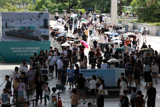 이달 15일 서울 용산구 국립중앙박물관을 찾은 관람객들이 입장을 하기 위해 대기하고 있다. 뉴시스 |