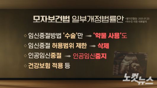 해당 개정안은 수술에 한정됐던 임신중지 방법을 약물에 의해서도 가능하게 하고, 기존 24주 이내로 제한됐던 임신중절 허용 기간과 사유 조건을 삭제하는데 사실상 낙태 전면 허용으로 이어질 수 있다는 겁니다.