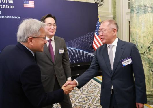 25일(현지 시간) 한·미정상회담에 이어 열린 '한·미 비즈니스 라운드테이블'에서는 양국의 주요 재계 인사들이 총출동했다. 한국 경제인 사절단으로 자리에 함께한 이재용 회장과 최태원 회장이 젠슨 황 CEO와 함께 이야기를 나누는 장면이 담기면서, 향후 고대역폭메모리(HBM) 등 고부가 메모리의 핵심 고객사인 엔비디아와의 협력 강화에 관심이 집중된다.