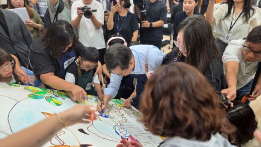 김동연 경기도지사가 경기북부장애인복지종합지원센터에서 도담학교 학생·학부모들과 그림을 그리고 있다./사진=노진균기자 |