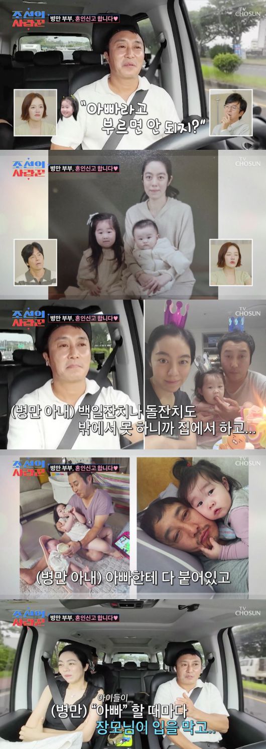심지어 김병만을 '아빠'라 부르는 아이를 말린 적도 있었다고 밝혔다. 그는 "한번쯤은 가야 되겠다 해서 집 근처에 같이 (밥을) 먹으러 갔는데 '아빠' 이러면 장모님이 입을 막았다. 지난번에 아기가 딱 그러더라. 우동을 먹으러 갔는데 '아빠라고 부르면 안 되지?'"라고 말해 안타까움을 자아냈다. 아내는 "어린데 그걸 아는 게 마음이 아프다"고도 말했다.