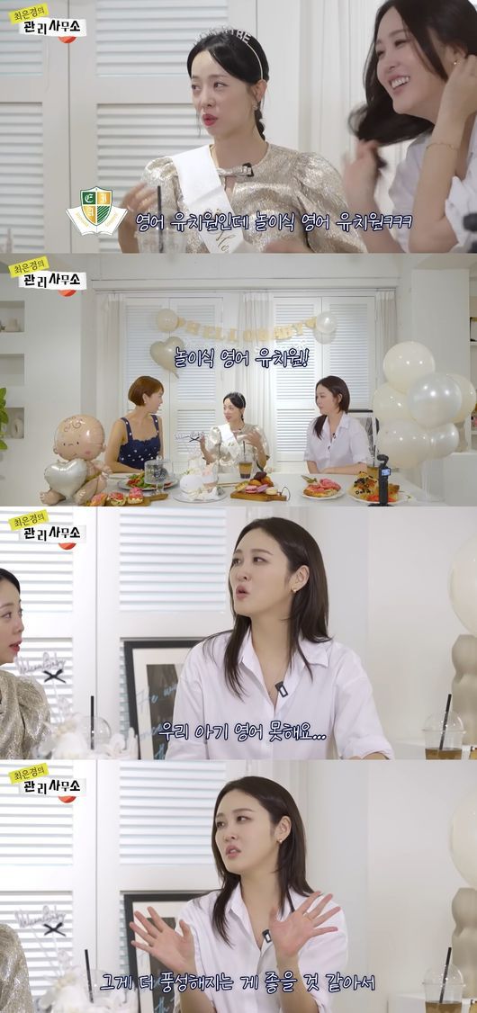 최은경은 “영어 유치원 나왔다고 해서 영어를 잘하게 될까?”라고 물었고, 박은영은 “그니까 이제 일반 초등학교에 가면 영어를 안 가르치니까 실력이 확 줄지 않냐. 그니까 엄마들이 그렇게 학원을 보내는 거다”라고 설명했다.
