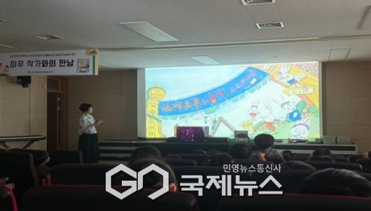 (영주=국제뉴스) 백성호 기자 = 영주가흥초등학교병설유치원(원장 성태동)은 8월 26일(화), 유아 56명(3학급)을 대상으로 본원 시청각실에서 9시 30분부터 2시간 가량 유아들의 독서 흥미 향상 및 창의력 증진 시간 마련을 위해 그림책 작가 미우 초청 체험을 실시했다.