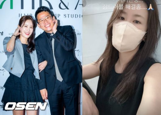 공개된 사진 속 김지민은 마스크를 착용한 채 초췌한 얼굴로 셀카를 촬영 중인 모습이다.