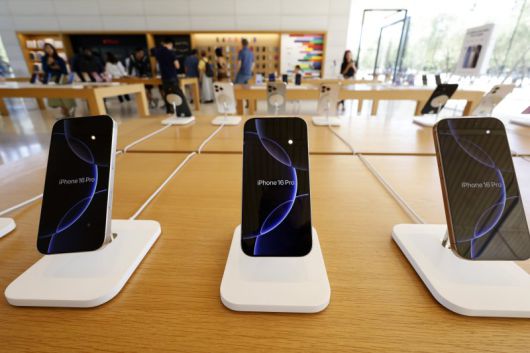 애플 아이폰 16 프로 스마트폰이 7월 29일(현지시간) 미국 캘리포니아주 쿠퍼티노 애플 본사에 전시돼 있다. EPA 연합 |