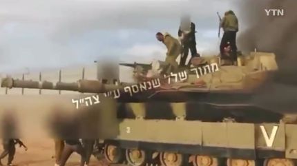 하마스 무장대원들은 탱크에서 군인들을 끌어내고, 화면 밖에서는 총성이 들립니다.