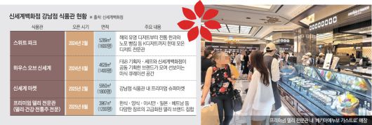 김 씨가 놀라움을 금치 못한 프리미엄 델리 전문관 규모는 3966㎡(약 1200평)에 이른다. 이번 리뉴얼을 끝으로 신세계는 2년간 진행한 강남점 식품관 리뉴얼에 마침표를 찍었다. 지난해 2월 ‘스위트 파크’, 같은 해 6월 ‘하우스 오브 신세계’, 올 2월 ‘신세계 마켓’에 이은 식품관의 네 번째 공간이다. 이로써 신세계 강남점 식품관은 총 1만9834㎡(6000평) 규모로 재탄생했다.
