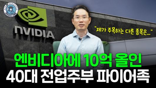 금융자산의 95%를 미국 반도체 기업 엔비디아에 투자해 40대에 은퇴한 작가 '손주부'(46)의 말이다. 그가 엔비디아에 처음 투자한 시점은 주가가 4달러이던 2017년이다. 지난해 초에도 "저평가됐다"며 3억원을 추가 투입했고, 현재 그가 보유한 엔비디아 주식의 가치는 10억원에 달한다. 손주부는 "분산 투자의 수익률이 생각보다 좋지 않더라"며 "워런 버핏도 초반에는 집중 투자를 했던데 (나도) 결과가 좋아 만족한다"고 밝혔다.