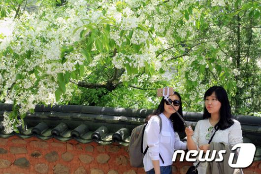 경남 밀양시 부북면 위양리 위양지 한가운데는 안동 권씨 후손인 학산(鶴山) 권삼변(權三變) 선생의 얼이 서린 완재정(宛在亭)에서 관광객들이 사진 촬영을 하고 있다. ⓒ News1 |