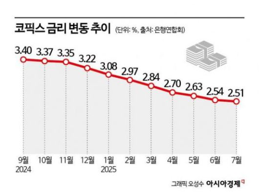 변동금리는 2022년 6월(3.87%) 이후 약 3년여 만의 3%대 금리로, 5월(연 3.97%)에 이어 두 달 연속 3%대 금리를 기록했다. 변동금리가 3%대로 내려온 것은 은행권 주담대 변동금리의 산정 기준이 되는 코픽스(COFIX) 금리가 지난해 9월(3.40% 신규 취급액 기준) 이후 꾸준히 하락한 영향이다. 코픽스 금리는 지난해 9월 이후 줄곧 하락해 올해 7월 기준 2.51%를 기록하고 있다.