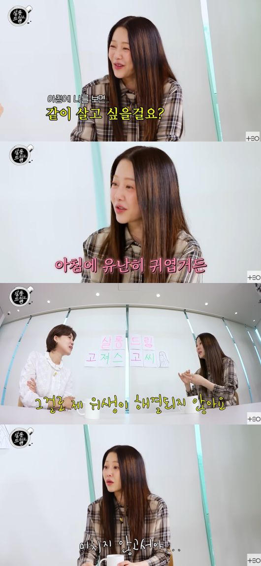 장도연과의 대화에서는 털털한 너털웃음을 지으며, 자신에 대해 "아침에 나를 보면 살고 싶을 거다. 아침에 유난히 귀엽다"고 솔직함을 보였다.