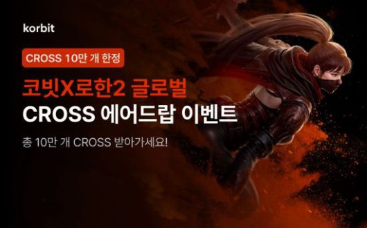 코빗은 오픈 블록체인 게임 플랫폼 크로쓰의 MMORPG '로한2 글로벌'과 함께 크로쓰(CROSS) 에어드랍 이벤트를 다음달 2일까지 진행한다고 27일 밝혔다.