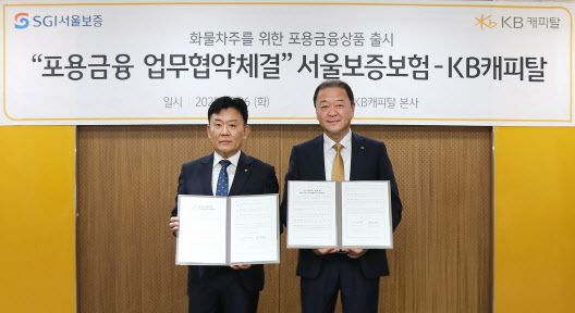 [이데일리 송주오 기자] KB캐피탈은 지난 26일 서울보증보험(이하 SGI서울보증)과 화물 운송료 선정산 금융 서비스 사업 업무 협약을 체결했다고 27일 밝혔다.