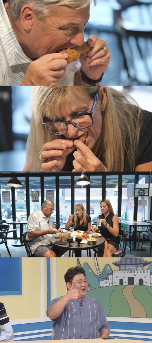 난생 처음 보는 '치킨용 집게'와 '치킨용 소금'에 놀란 부모님은 딸이 극찬했던 한국 치킨을 맛본 뒤, "전 세계 최고의 프라이드치킨"이라며 극찬을 아끼지 않았다는 후문이다. 두 사람은 장거리 비행의 여독도 잊고 추가 주문까지 하며 폭풍 '먹방'을 선보였다. 스튜디오에서 이 모습을 지켜보던 MC 김준현은 "치킨의 본고장에서 인정받은 기분"이라며 흐뭇해했다.