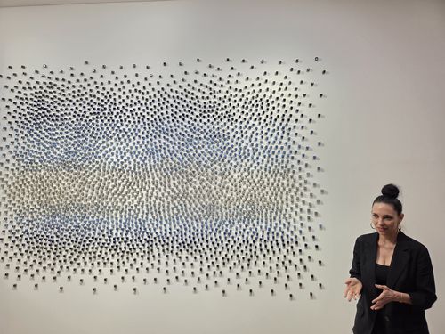 대형 설치 작품 '화이트 포스포러스/코발트'(White Phosphorus/Cobalt)는 수천 개의 작은 세라믹 큐브로 구성됐다. 중심부에서 위아래로 멀어질수록 색의 채도와 밝기가 짙어진다. 이를 통해 팽창과 수축을 표현했다.