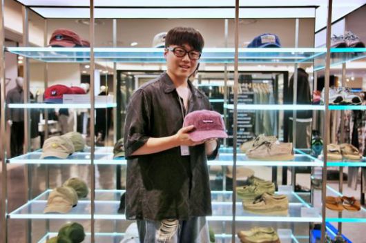 광주신세계 본관 7층 시리즈 매장에 마련된 편집샵에서 직원이 슈프림 모자를 선보이고 있다. 광주신세계 제공 |