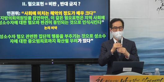 이 교수는 2021년 11월5일 ‘차별금지법 바로 알기 아카데미’ 강연에서 ‘인권위 혐오 표현 의견 표명의 부당성’이라는 제목으로 강의하며 이같이 주장했다.