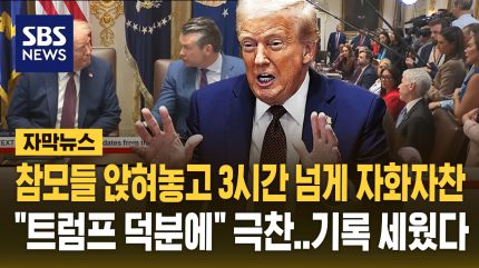 미 의회 전문 매체 '롤콜'은 이번 국무회의가 트럼프 대통령의 공개 영상 출연으로 최장 기록을 세웠다고 분석했습니다.