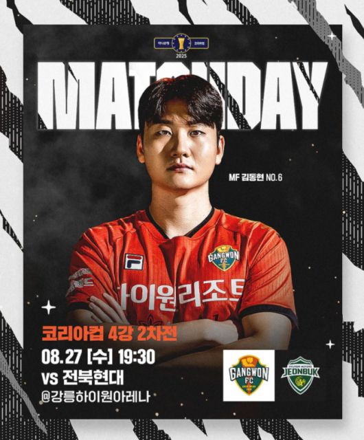 강원은 27일 오후 7시 30분 강릉하이원아레나에서 열리는 '2025 하나은행 코리아컵' 준결승 2차전에서 전북 현대를 상대한다. 1차전 결과는 1-1 무승부였다.