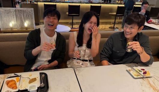 사진 속 그는 영화 '어쩔수가없다'에 함께 출연한 배우 이병헌, 박희순과 베니스영화제 참석차 출국하기 위해 만난 모습이다. 함께 잔을 들어올리고 화기애애한 모습을 보였다.