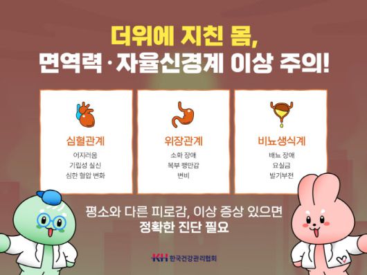 이처럼 여름 내내 지친 몸은 늦더위에 더욱 취약해지며, 몸의 면역 세포 활성도를 떨어뜨려 각종 질병에 걸리기 쉽게 만든다. 이로 인해 우리 몸의 항상성을 유지하는 자율신경계에 문제가 발생할 수 있다. 자율신경계는 몸의 모든 부위와 장기에 분포하므로, 이상이 생기면 여러 증상이 나타난다.