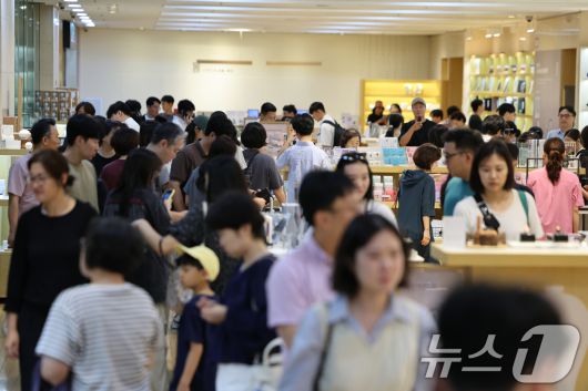 (서울=뉴스1) 황기선 기자 = 넷플릭스 애니메이션 영화 '케이팝 데몬 헌터스' 등 우리의 국가유산을 소재로 한 콘텐츠들이 전 세계적으로 인기를 얻고 있는 가운데 27일 오전 서울 용산구 국립중앙박물관 공식 굿즈 매장 '뮷즈샵'에서 관람객들이 제품을 살펴보고 있다. 국립중앙박물관이 발표한 자료에 따르면, 올해 1월부터 이달 25일까지 누적 관람객은 418만 9822명으로 집계, 연간 관람객 수가 역대 최고를 기록했다고 밝혔다. 2025.8.27/뉴스1