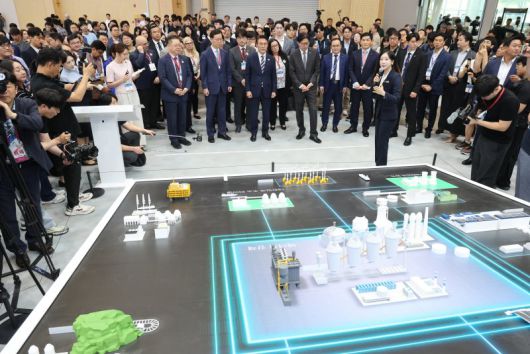 김민석 총리는 효성중공업, LS그룹, 한화큐셀, 에퀴노르, 삼성전자, LG전자, 현대차그룹, SK그룹 등의 부스를 살펴봤다.