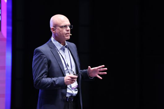 댄 카르파티(Dan Karpati) 체크포인트소프트웨어테크놀로지스 AI센터 총괄(부사장)이 27일 서울 중구 웨스틴조선호텔에서 열린 국내 최대 테크 콘퍼런스 ‘스마트클라우드쇼 2025’에서 기조연설을 하고 있다./조선비즈 |