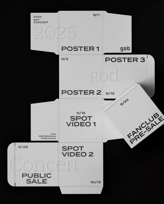 지오디는 27일 SNS에서 완전체 콘서트 프로모션 포스터를 공개했다. 순차적으로 진행될 다양한 콘텐츠와 예매 일정을 담았다.