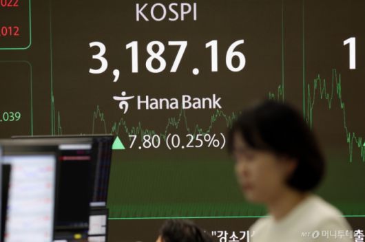 27일 코스피는 전 거래일 대비 7.80포인트(0.25%) 오른 3187.16에 거래를 마쳤다. 개인투자자와 기관투자자가 각각 608억원, 278억원 순매수했고 외국인투자자는 2031억원 순매도했다.