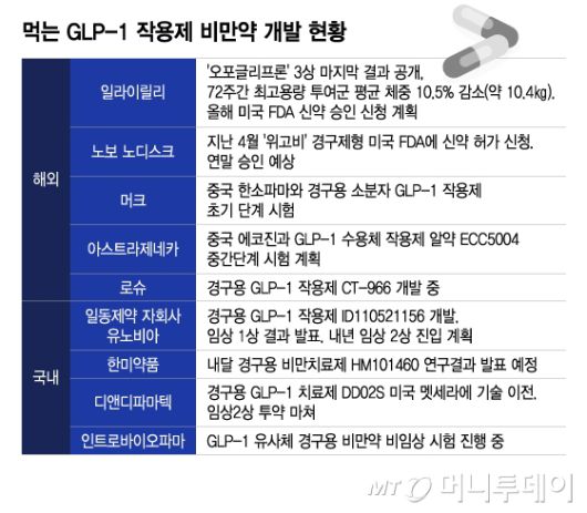 먹는 GLP-1 작용제 비만약 개발 현황/그래픽=이지혜 |
