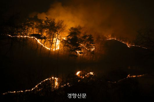 경북 의성군 산불 발생 이틀째인 지난 3월23일 안평면에서 산불이 번지고 있다. 문재원 기자