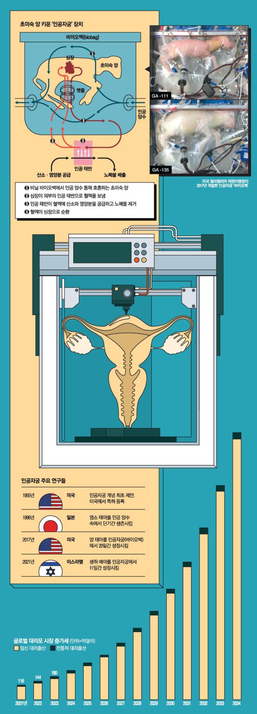 인간의 몸 밖에서 태아를 기르고 출산하는 '인공자궁' 아이디어는 오래전부터 나왔다. 실제로 도전하고 있는 연구자도 많다. 최근에는 실제 자궁을 조금씩 모사하는 유의미한 성과도 나오고 있다.