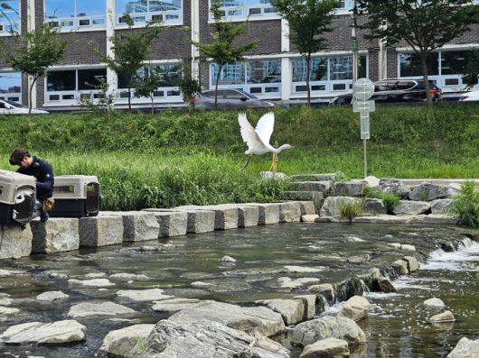 [대전=뉴스핌] 오영균 기자 = 대전시는 27일 대전시 야생동물구조관리센터 주관으로 도심에서 구조한 백로 35마리를 대전천 인근에 자연 방생했다.