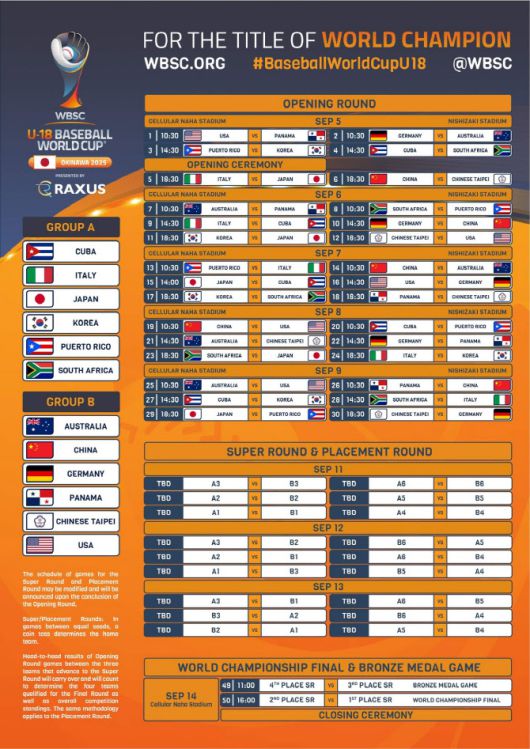 이번 대회는 한국을 비롯해 일본, 대만, 미국, 쿠바 등 총 12개국이 참가한다. 한국은 일본, 쿠바, 이탈리아, 푸에리토리코, 남아공과 함께 A조에 편성됐으며, 조별리그 상위 3개국이 슈퍼라운드에 진출하게 된다.