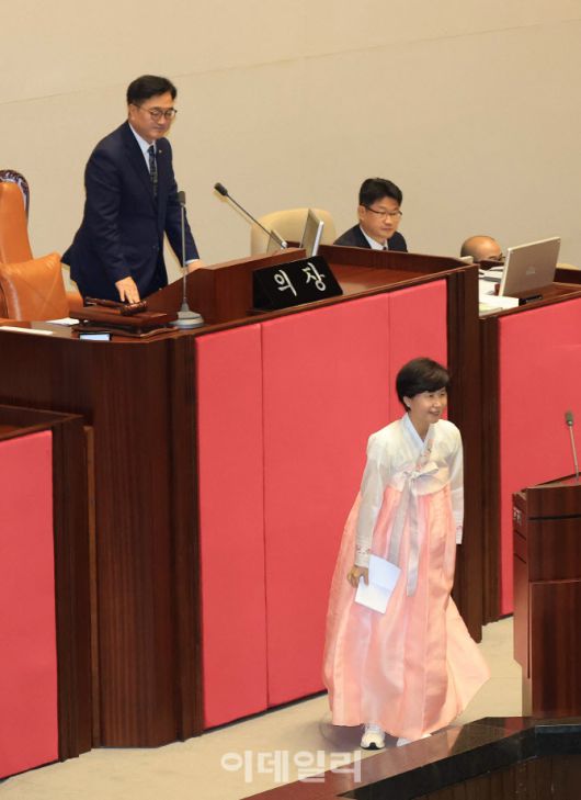 [이데일리 노진환 기자] 백혜련 더불어민주당 의원이 27일 오후 서울 여의도 국회에서 열린 제428회국회(임시회) 제3차 본회의에서 자유발언을 마치고 있다. |