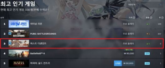 먼저, 출시 1주년을 맞은 퍼스트 디센던트는 지난 7일 대규모 신규 콘텐츠가 포함된 시즌3 '돌파' 업데이트를 실시했다. 업데이트가 적용되고 첫 주말이 지난 11일, 퍼스트 디센던트는 스팀 매출 순위에서 국내 3위, 글로벌 6위를 기록하며 반등에 성공했다. 동시접속자 수 역시 업데이트 직전 대비 약 3배 증가하며 뚜렷한 상승세를 보였다.