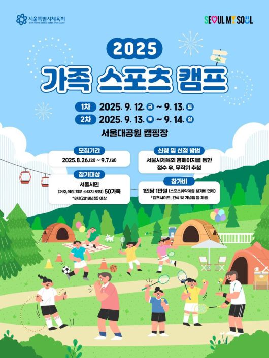 [SWTV 스포츠W 임재훈 기자] 서울시체육회가 주최·주관하고 서울시가 후원하는 ‘2025년 가족 스포츠 캠프’가 다음 달 서울대공원 캠핑장에서 개최된다.