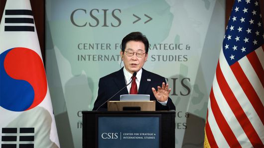▲ 이재명 대통령이 25일(현지시간) 미국 워싱턴DC 국제전략문제연구소(CSIS)에서 정책 연설을 하고 있다.