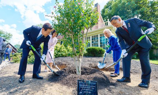 강유정 대통령실 대변인은 서면브리핑을 통해 “이 대통령과 김혜경 여사는 이날 오후 서재필 기념관을 방문해 기념관 시설을 둘러보고 재단 관계자들을 격려했다”며 “기념관 관람 후 이 대통령과 김 여사는 광복 80주년을 맞아 기념식수로 대한민국을 상징하는 무궁화를 식재하며 기념관 방문의 의미를 더했다”고 밝혔다.