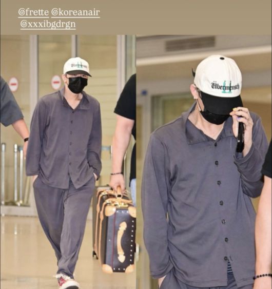 대한항공은 27일 자사 공식 사회관계망서비스(SNS)에 지드래곤이 짙은 회색 상·하의를 입은 사진을 올렸다. 해당 사진은 지난 25일 오후 지드래곤이 해외 일정을 마치고 인천국제공항을 통해 귀국했을 당시 촬영된 사진이다. 이날 지드래곤은 여유 있는 회색 상·하의에 자신의 앨범명을 담은 '위버맨쉬' 볼 캡, 운동화를 매치해 편안하면서도 감각적인 패션으로 이목을 끌었다.