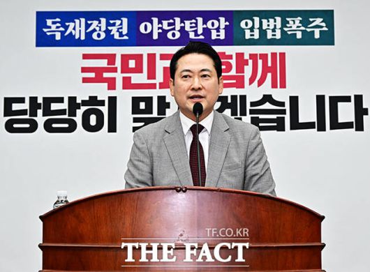 '장동혁 체제'가 시작되자마자 국민의힘 내부에서 반탄(탄핵 반대)와 찬탄(탄핵 찬성)간 기싸움이 심화하면서 분당 가능성까지 제기되고 있다. 사진은 장동혁 국민의힘 대표가 27일 오전 서울 여의도 국회에서 열린 의원총회에 참석해 인사말을 하고 있는 모습. /국회=배정한 기자 |