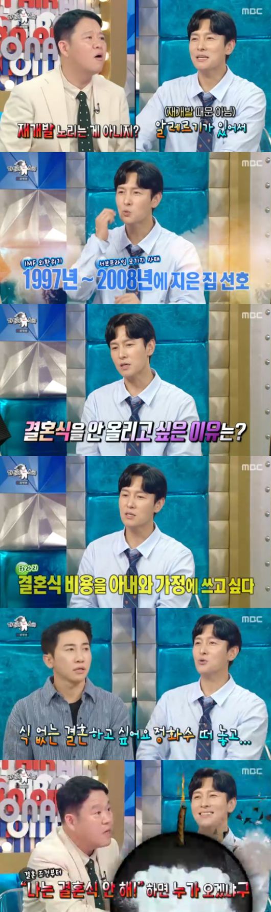 결혼식을 안 하려는 이유를 묻자 "필요없는 문화 같다. 스몰 웨딩을 해도 돈이 많이 들지 않냐. 그냥 그 돈으로 아내와 가정에 쓰는 것이 나은 것 같다. 그냥 둘이서 정화수 떠놓고..."라고 했다.