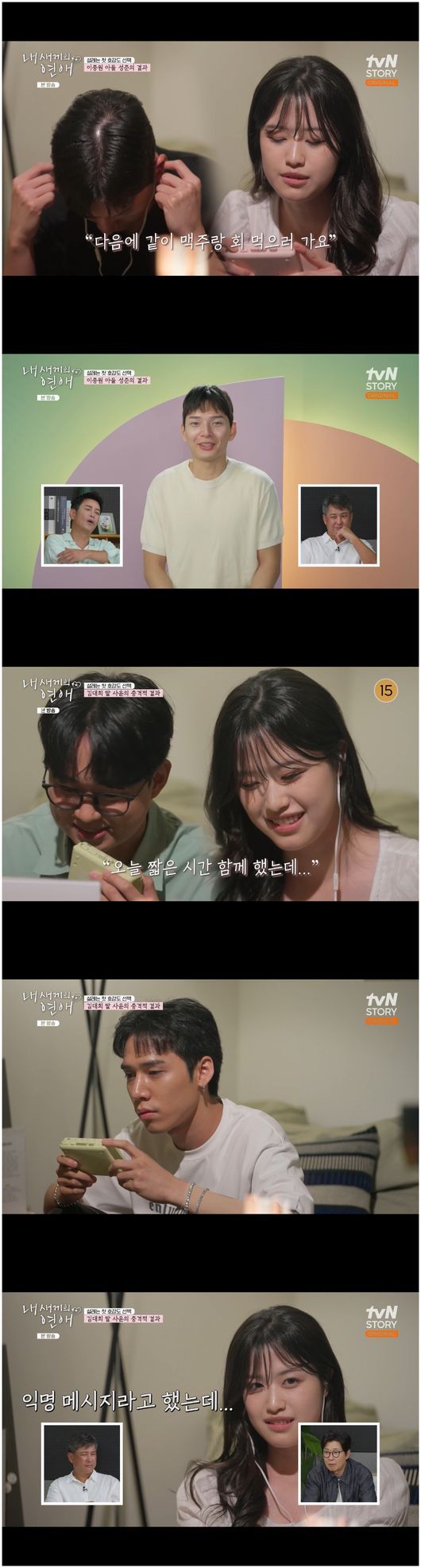 우선 이탁수는 여성 출연자들에게 큰 인기를 얻었다. 전희철 딸 전수완, 이철민 딸 이신향에게서였다. 이탁수는 제 첫인상으로 이신향을 선택했다. 이철민은 “전 되게 복잡한 감정이 드는 게, 전 감독님 생각하면 마음이 그렇다. 탁수 생각하면 잘생겼고, 키 크고 좋다. 그런데 아버지인 이종혁을 생각하면 좀”이라며 복잡미묘한 표정을 드러냈다.
