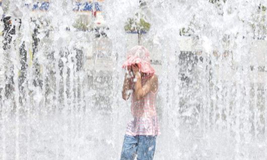 전국 대부분 지역에 폭염특보가 발효 중인 17일 서울 광화문광장 바닥 분수에서 어린이들이 뛰놀고 있다.연합뉴스 |