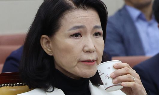 이진숙 방송통신위원장이 26일 오전 서울 여의도 국회 과학기술정보방송통신위원회 전체회의에서 물을 마시고 있다. 뉴시스 |