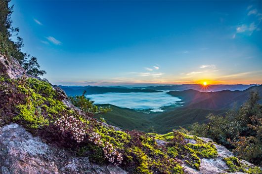 양구군 <해안분지> 펀치볼. 해안분지(펀치볼)은 양구 9경중 6경으로 해발400~500m의 고지대에 발달한 분지로 그 주위가 마치 화채(Punch) 그릇(Bowl)같아 ‘펀치볼’로 불리기 시작하였으며, 이 일대는 6.25전쟁 당시 펀치볼전투, 도솔산전투, 가칠봉전투가 벌어졌던 격전지로 전쟁 후 민간인 출입이 통제되면서 자연환경이 온전히 보전되어 왔다. 천연기념물 열목어, 개느삼을 비롯해 금강초롱, 흰비로 용담 등 많은 희귀 동식물이 서식하고 있다. 사진|양구군청 |